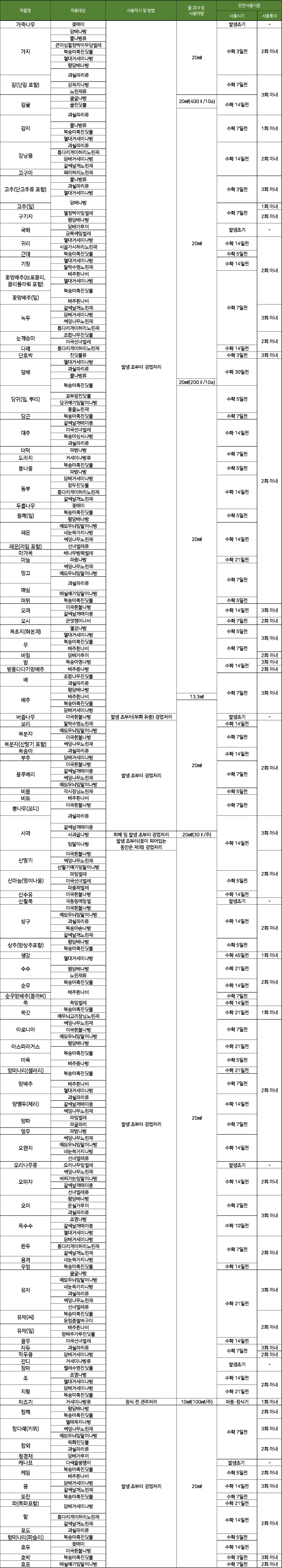 - 이 농약은 해충 발생초기에 약액이 충분히 묻도록 살포하십시오.