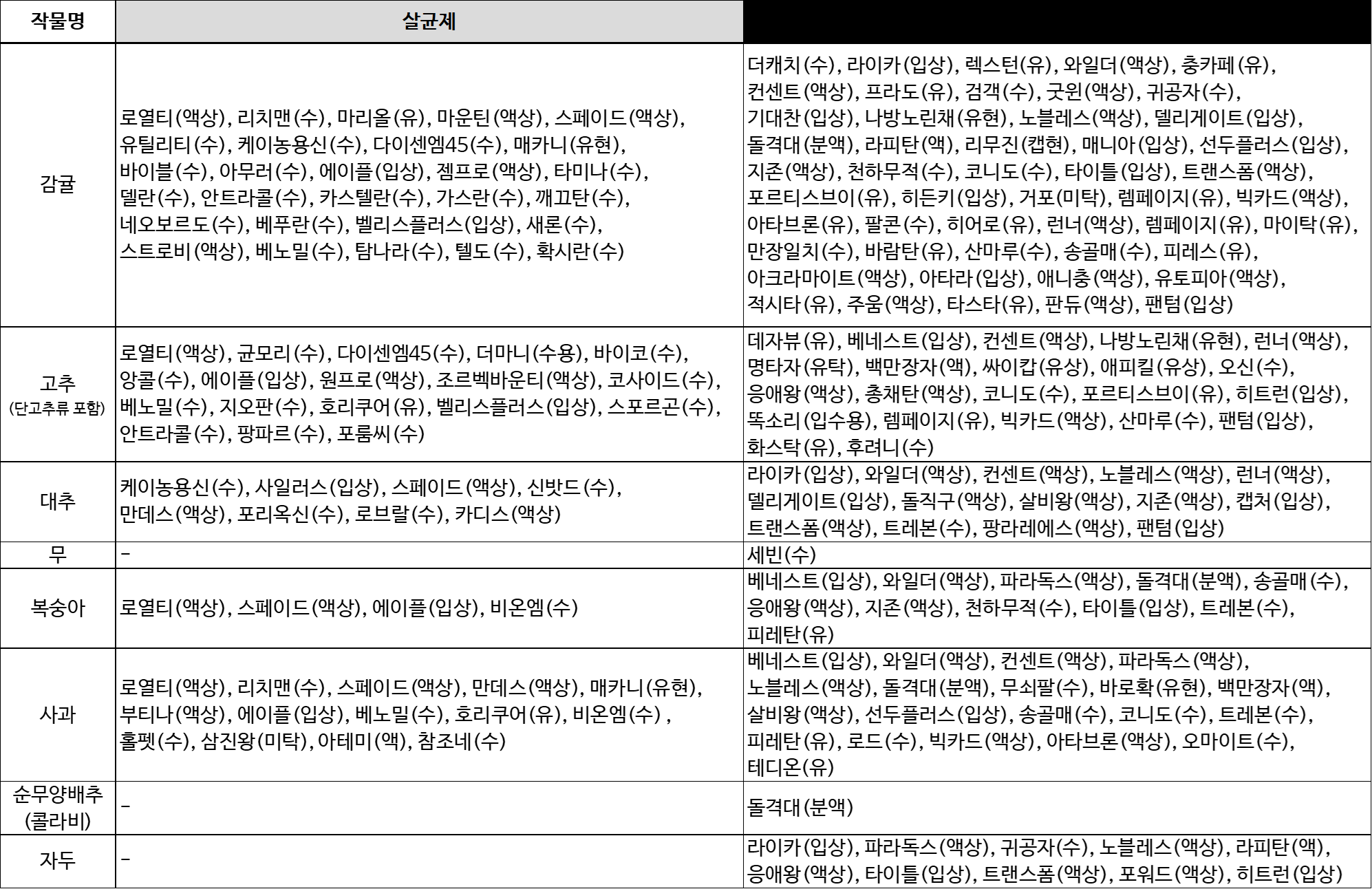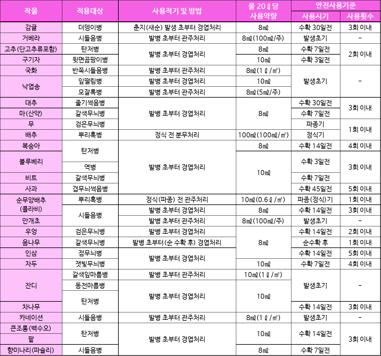 7. 적용대상 작물과 병해 이외에는 사용하지 마십시오.