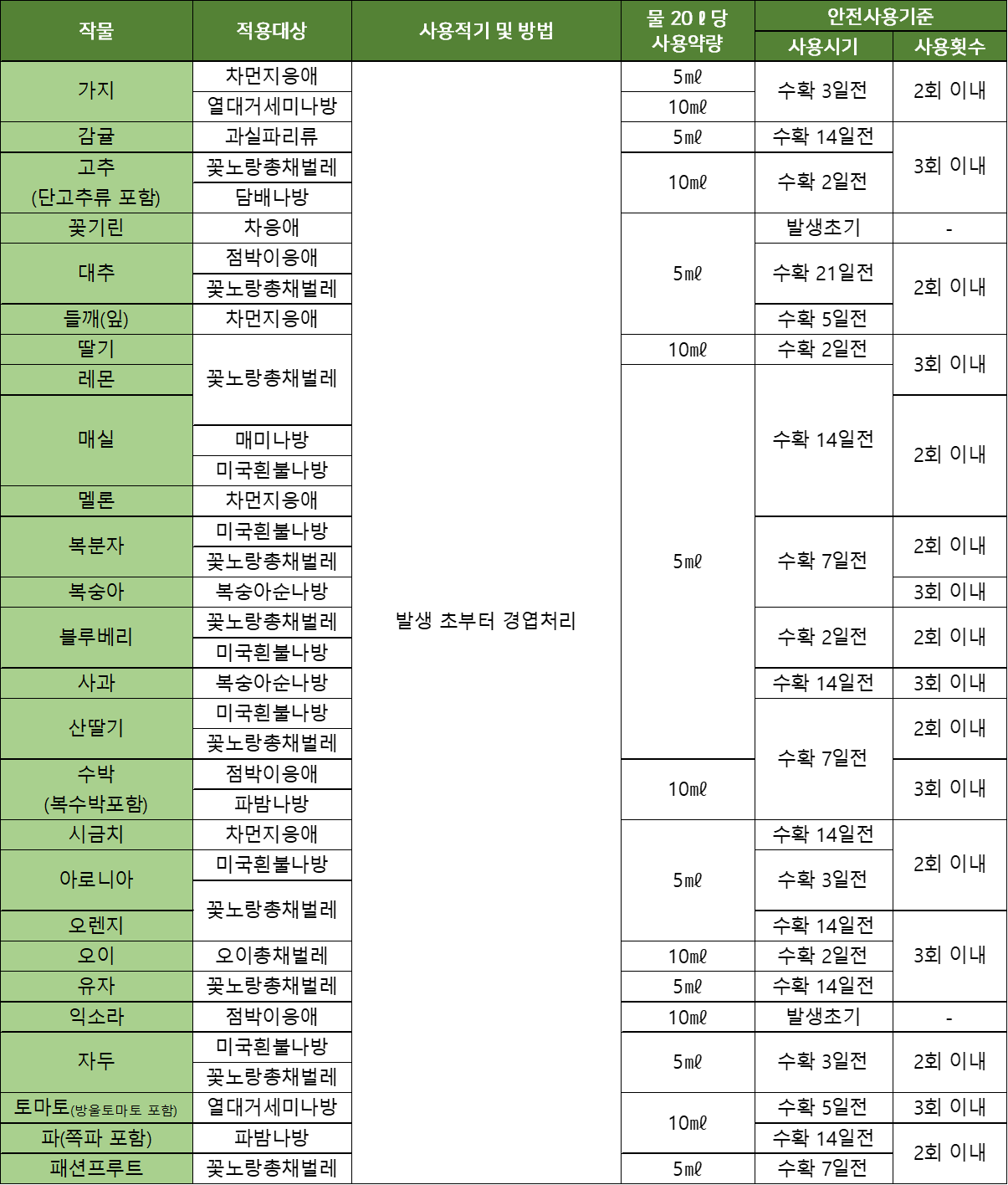 3. 이 농약은 해충 발생초기에 약액이 충분히 묻도록 살포하십시오.