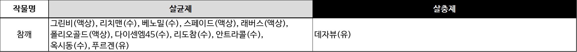 참깨 | 역병 | 발병 전 또는 장마 직전부터 경엽처리 | 수확 30일 전 | ||