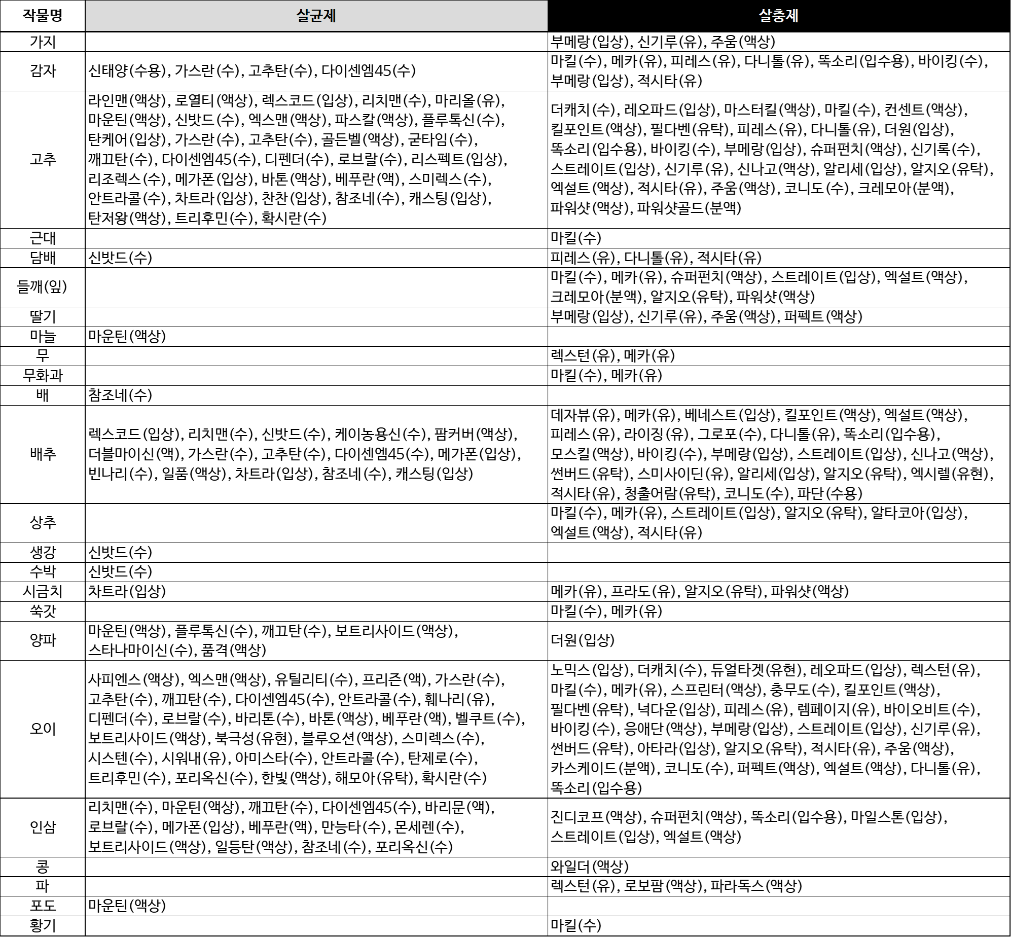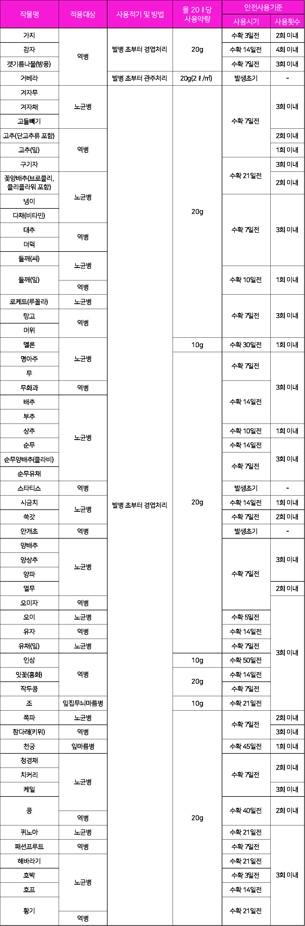 - 장마 직전부터 예방 위주로 살포하십시오.