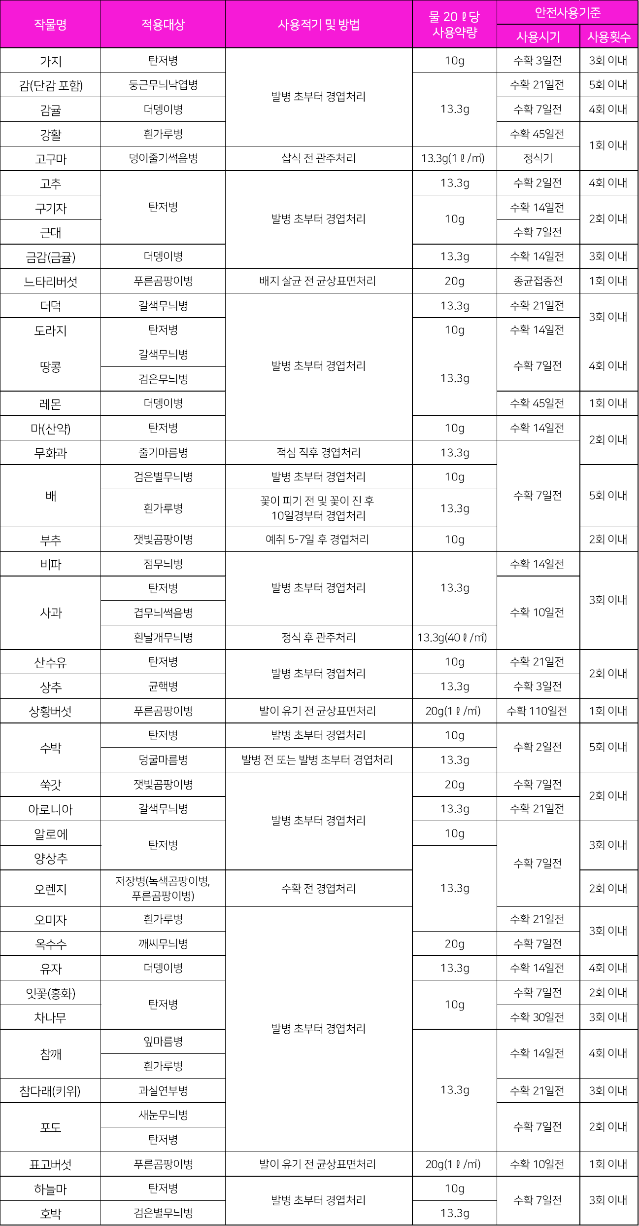- 다양한 작물의 병해에 광범위하게 사용 가능