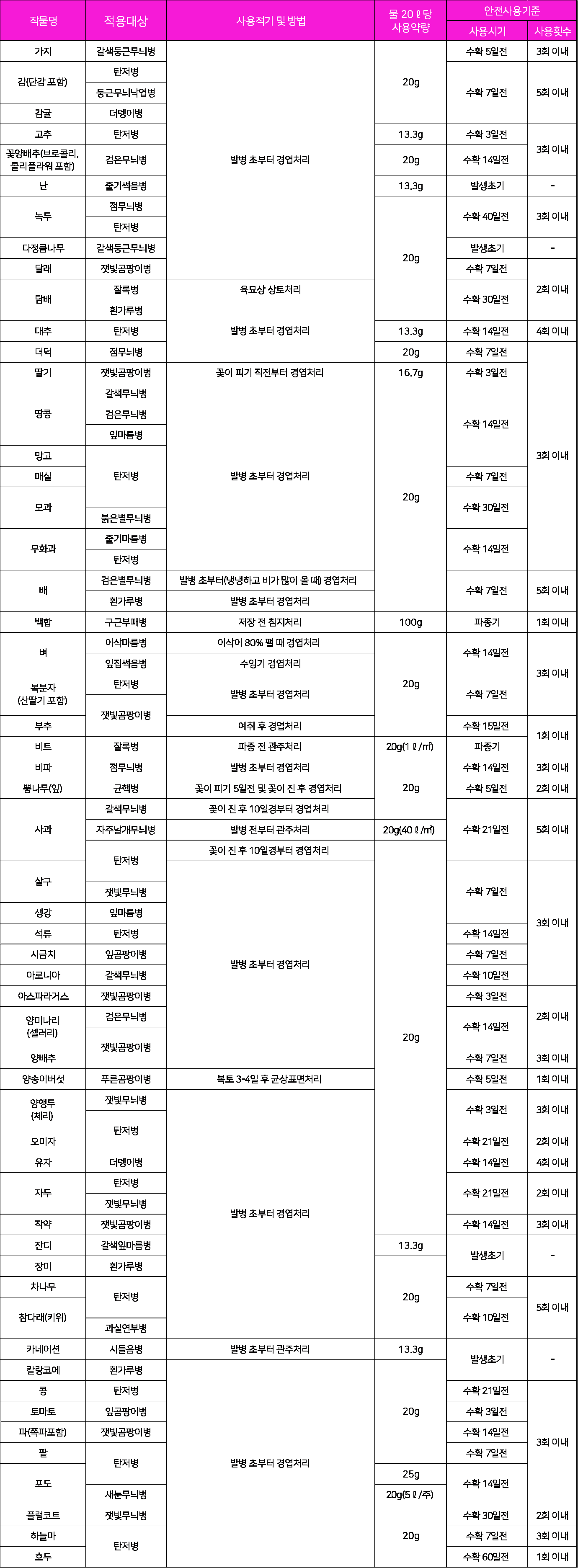 다양한 작물의 병해에 대한 예방 및 치료효과!