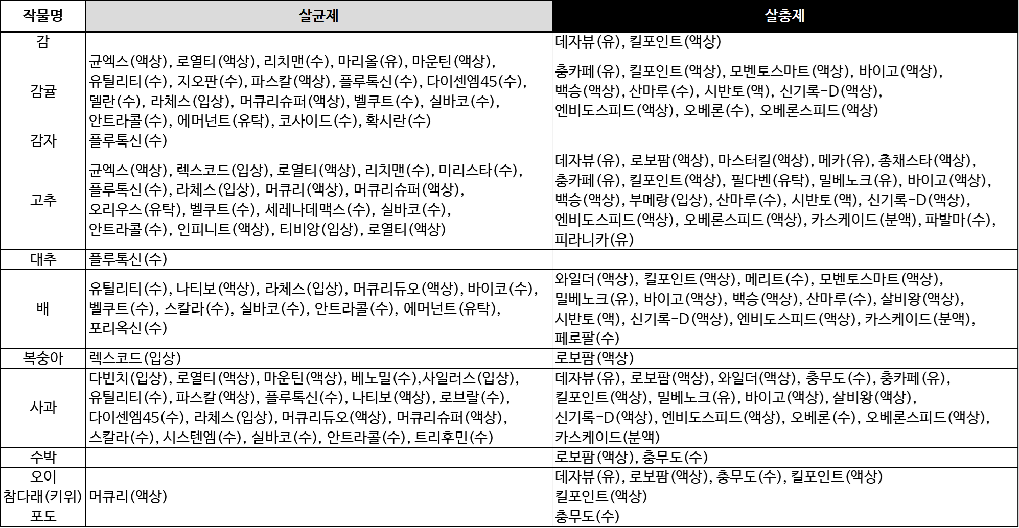 - 이 농약은 액상수화제이므로 사용하기 전 병을 잘 흔들어 내용물이 잘 섞이도록 한 후 사용하십시오.